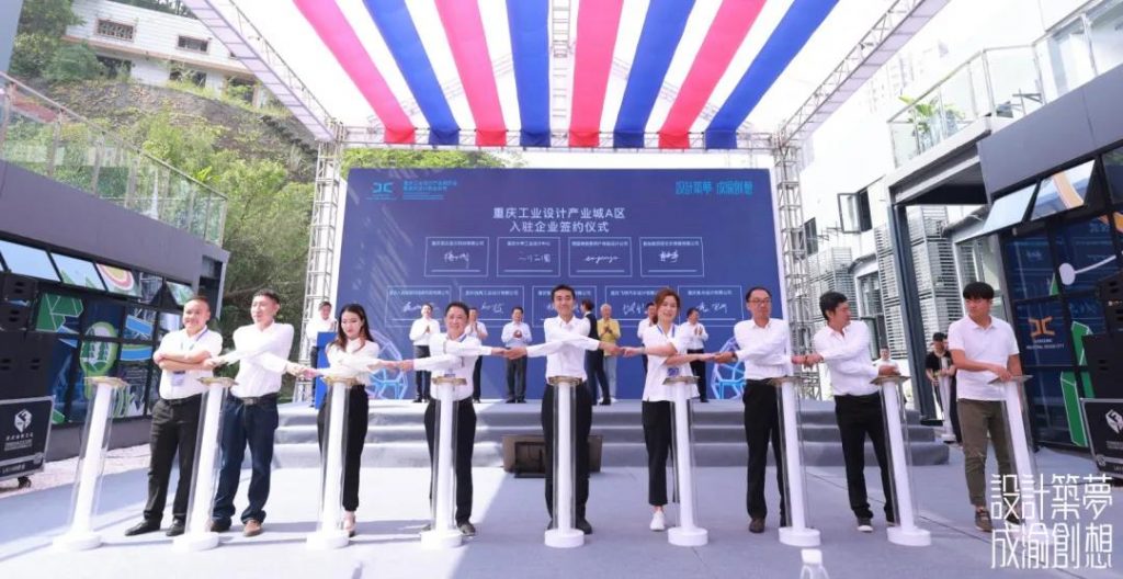在各级领导和产、学、研、资及各界嘉宾的见证下,重庆工业设计产业城运营方“华渝智汇创新科技有限公司”与8家首批入城代表企业签约。